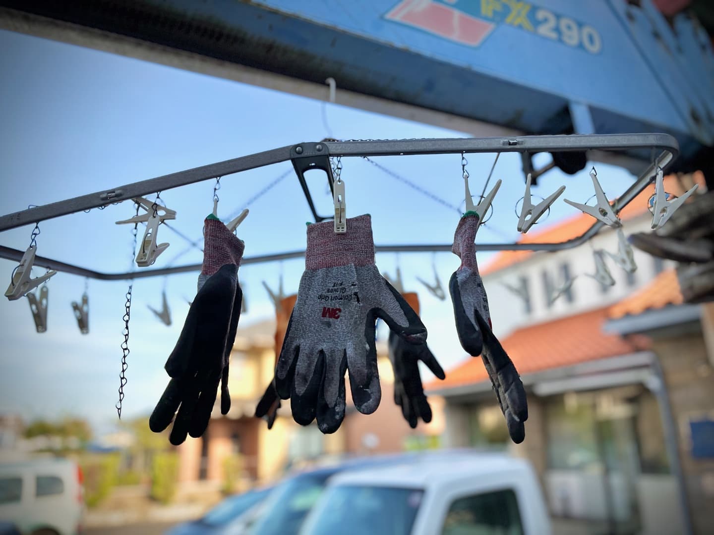 職人さんの中にはこの滑り止めはダメなどお気に入りのグローブがあったりします。作業中、切断や汚れからみんなの手を守ってくれる大事な保護具です。