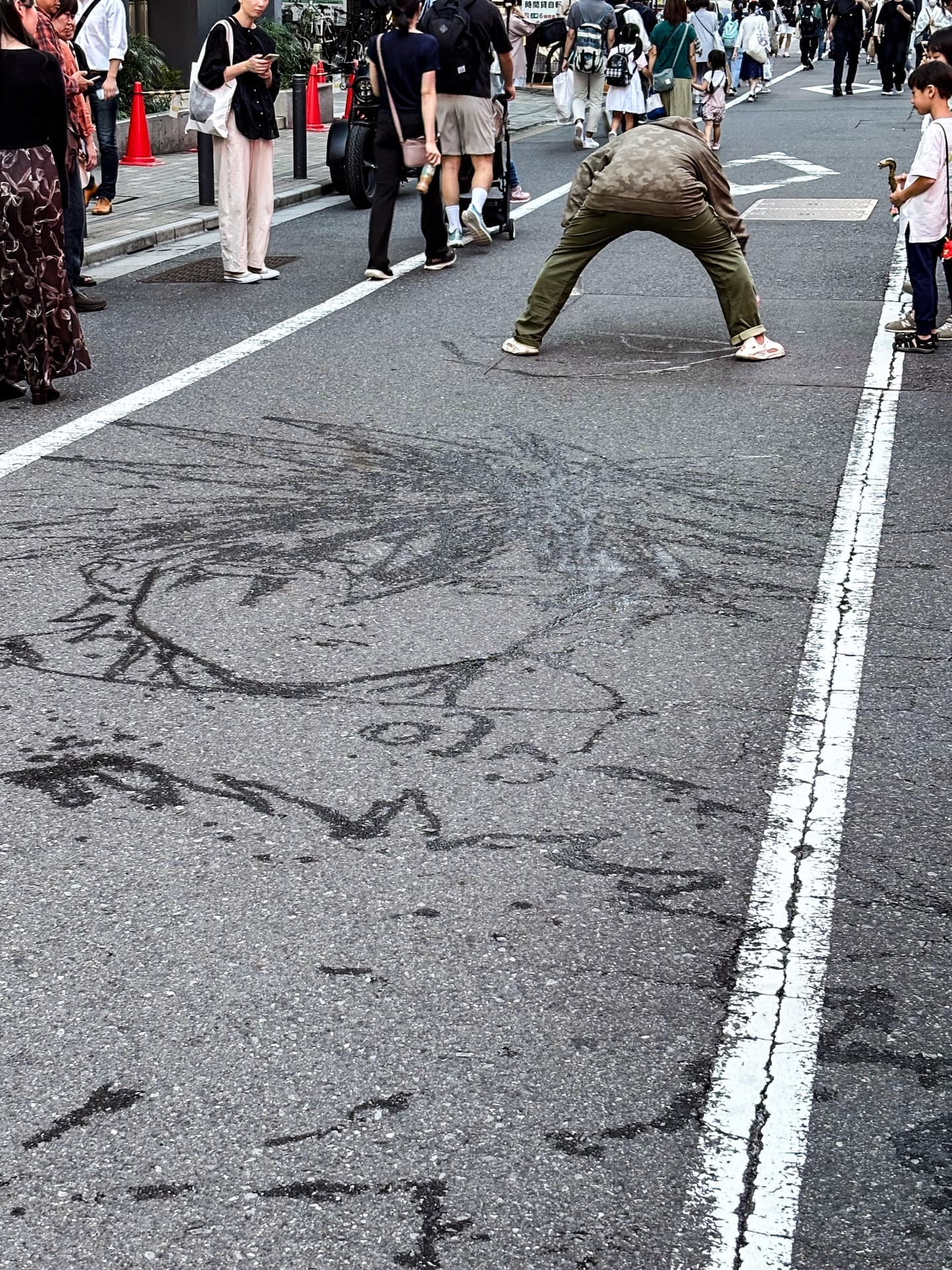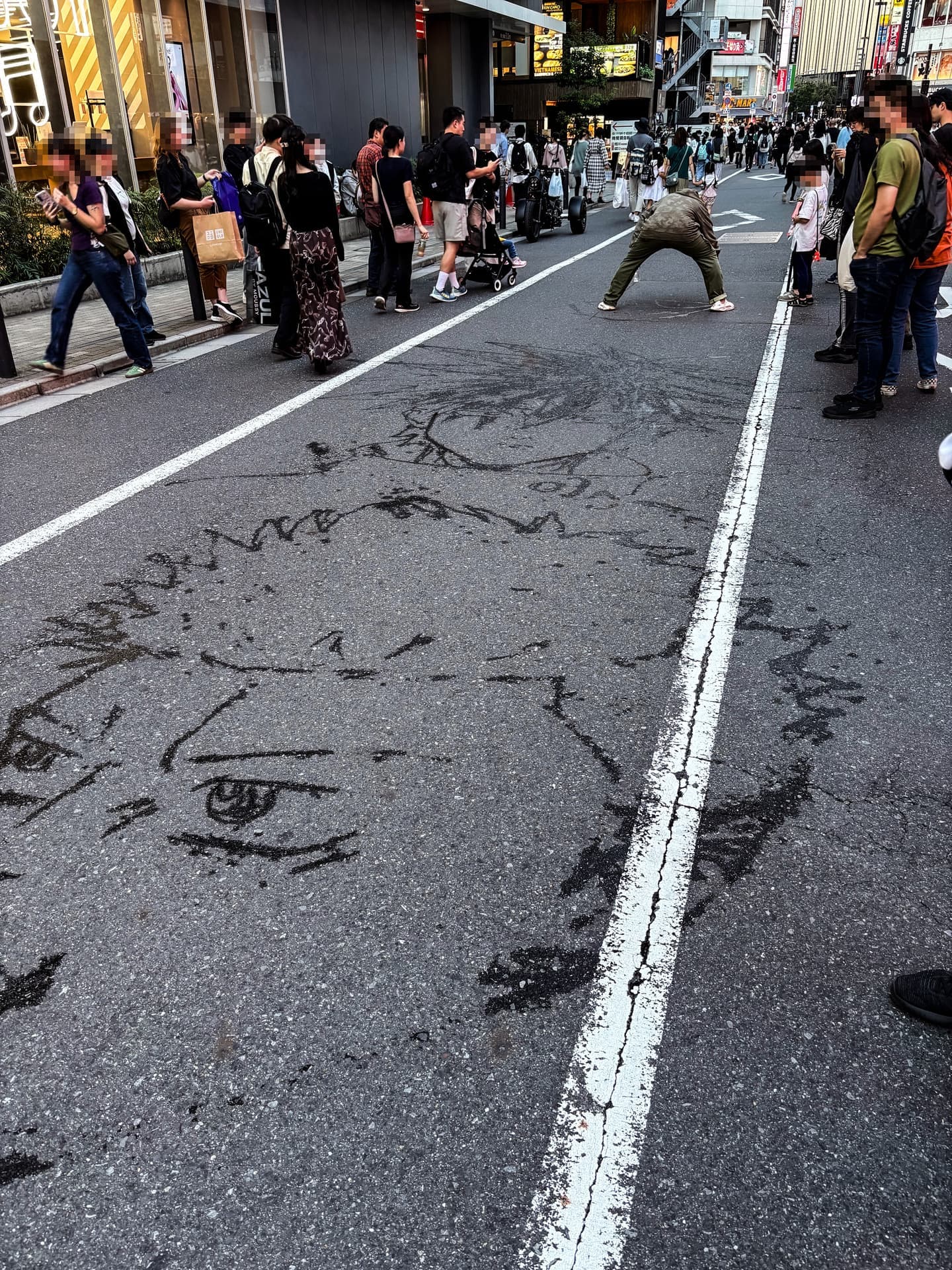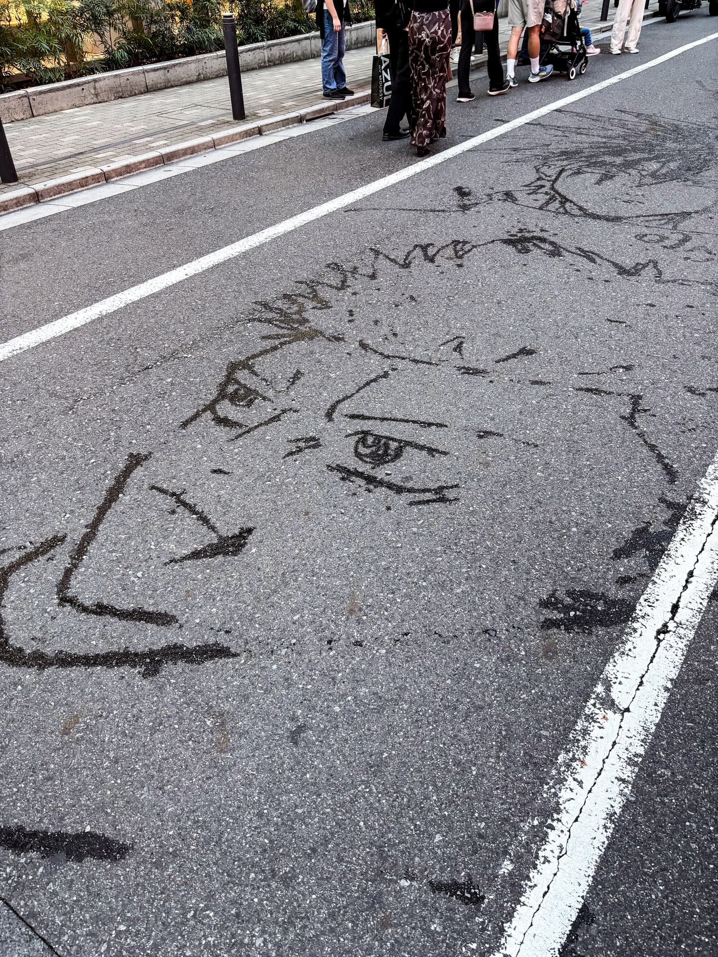 先日、池袋をブラブラしていると、そこにはなんと道路に落書きです。