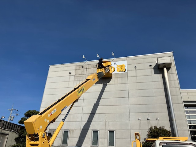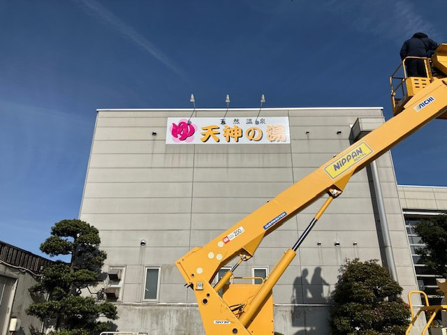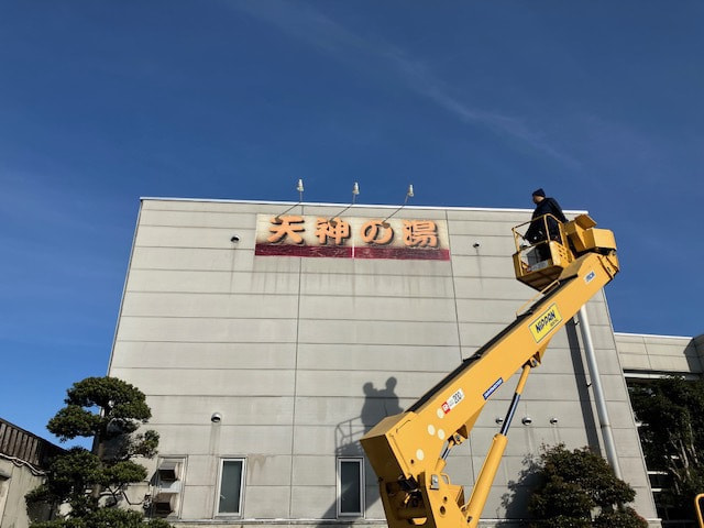 12月の某日、高崎市内の「天然温泉 天神の湯」さんの看板改修工事を行いました。