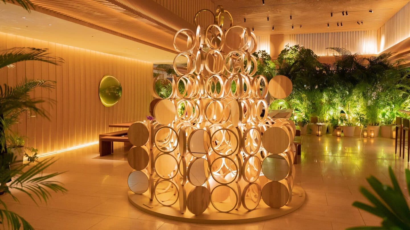 「木組」と名付けられた最初の木は、やはり隈氏が設計した東京エディション虎ノ門ホテルのロビーに設置されました。