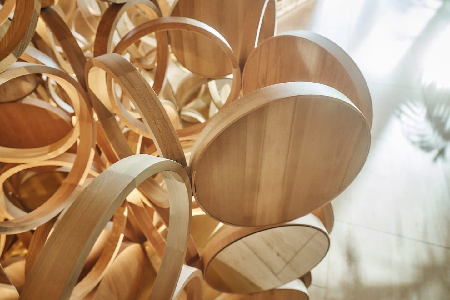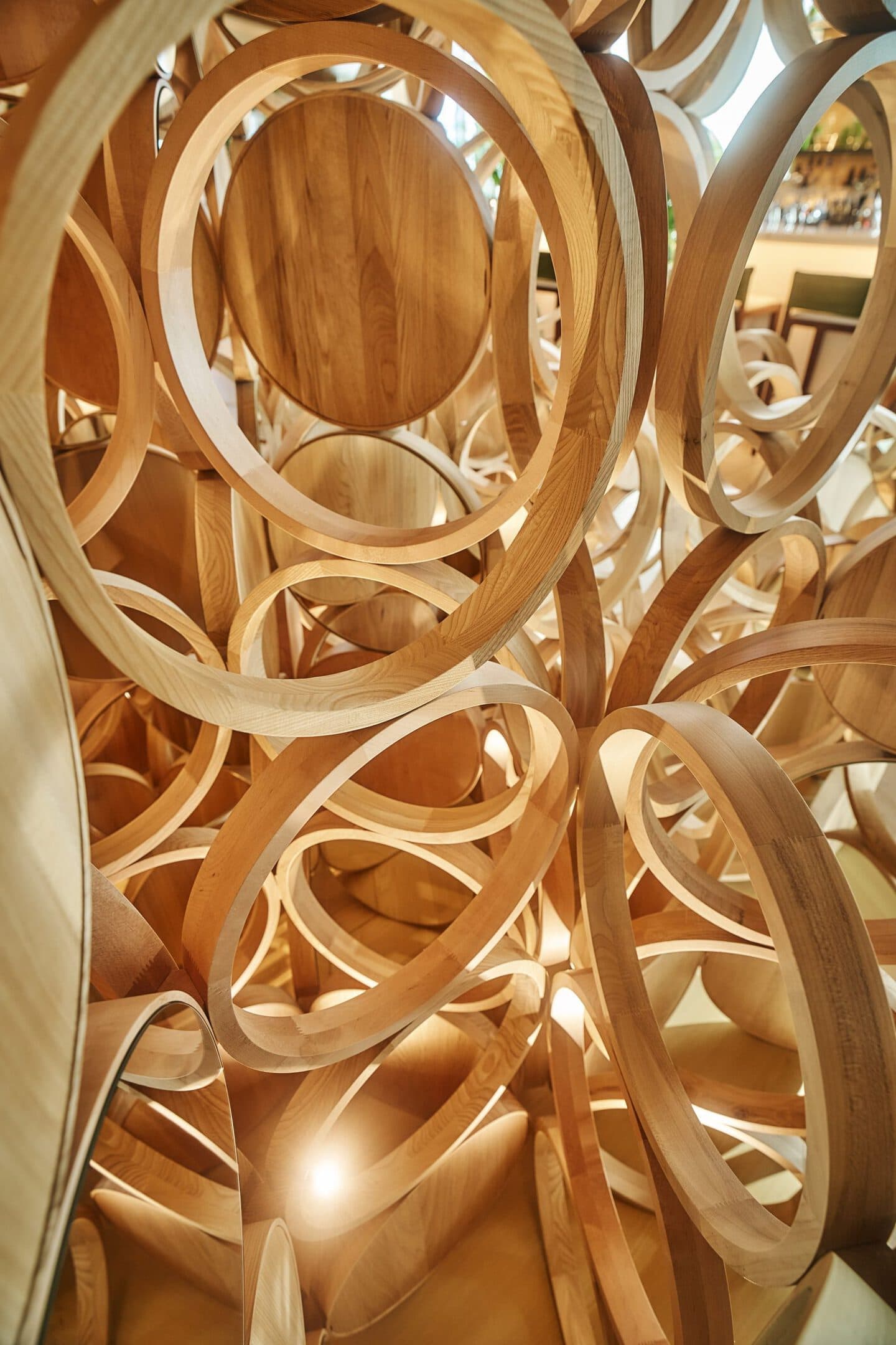2本目の木は「木漏れ日」と名付けられ、隈氏が設計した別のホテル、東京エディション銀座のロビーバーに設置された。