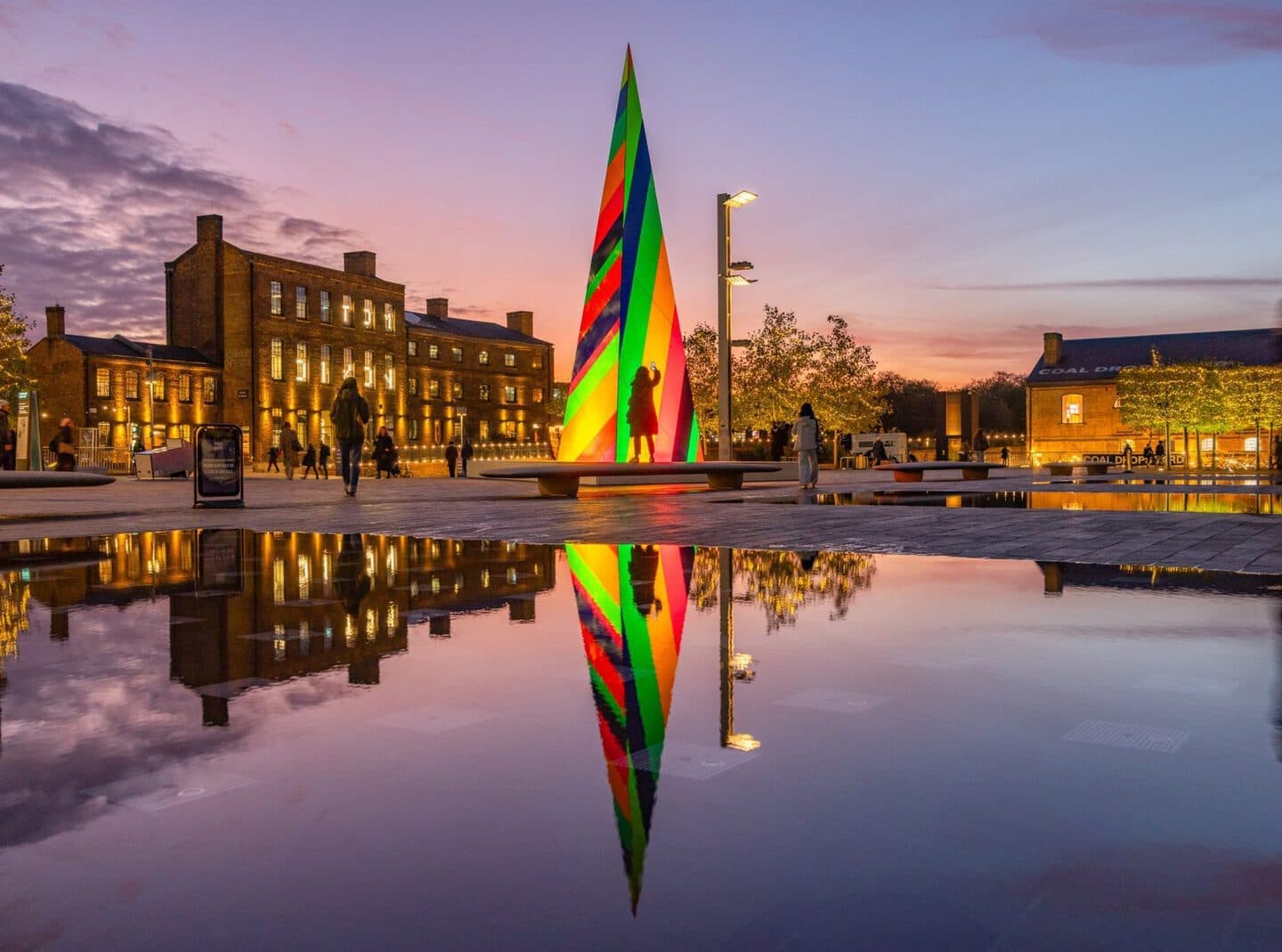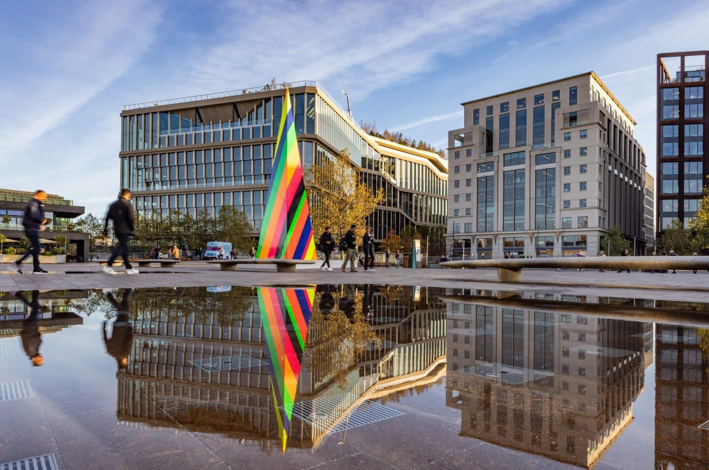 英国人アーティスト、リズ・ウェストは、ロンドンのキングス・クロスにあるグラナリー・スクエアを訪れる人々に喜びをもたらすことを目的としたネオンインスタレーション「フルーレセンス」を制作した。