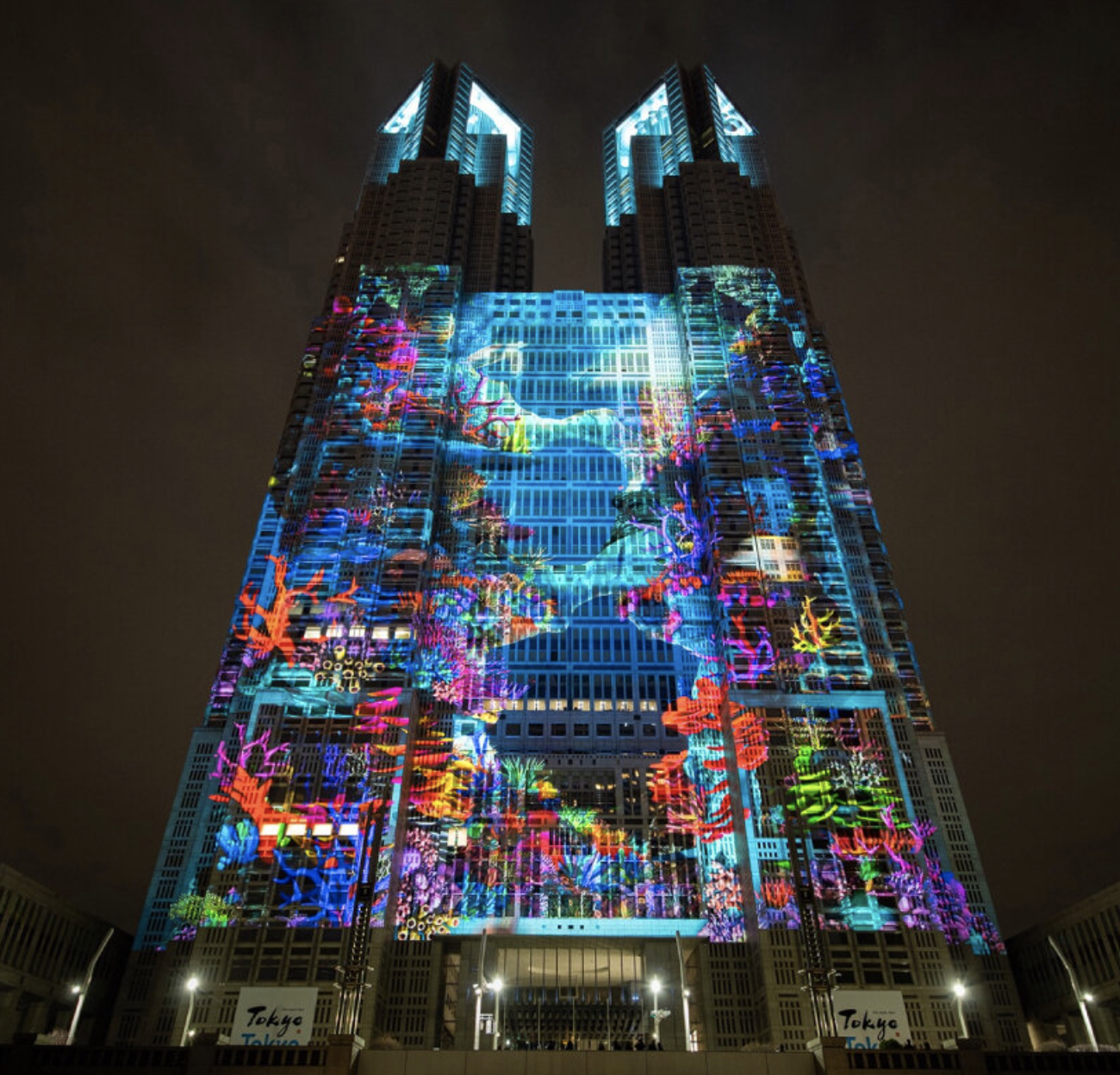 以前、「ファサードと看板」や「ドローンショー」などの話題に触れさせていただきましたが、今回は「ファサードと3Dプロジェクションマッピング」の話題です。2024年に二人の巨匠の代表作でプロジェクションマッピングが開催されました。今日は丹下健三の東京都庁のご紹介です。